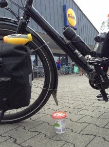 09.46 Boodschappen bij de Lidl. O.a. vruchtenyoghurt waar je me ’s nachts voor wakker kan maken (voor caramel- of mocca ijs mag dat ook hoor)