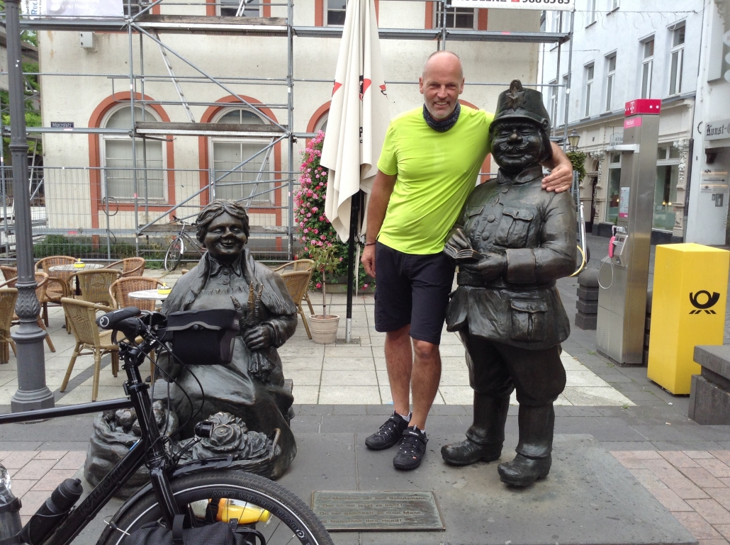 11.45 Koblenz bereikt. Even op de foto met mijn nieuwe vriend en bij de chinees op de hoek (chinezen zitten altijd op de hoek) voor zes (!) euro prima gegeten.