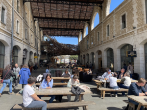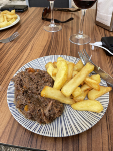 Tina spreekt naast Frans ook vloeiend Duits en kan dus voor mij vertalen indien nodig. De campinggasten hebben het al over mij gehad. Ze zijn erg benieuwd naar mijn verhaal over de reis naar Barcelona en word met open armen ontvangen. Het is een soort bring-your-own, maar dan op z’n Frans. De tafel wordt gevuld met zelfgemaakte aardappelpuree, een hele gebraden kip, ratatouille, brood, wijn en thuis geproduceerde likeuren.